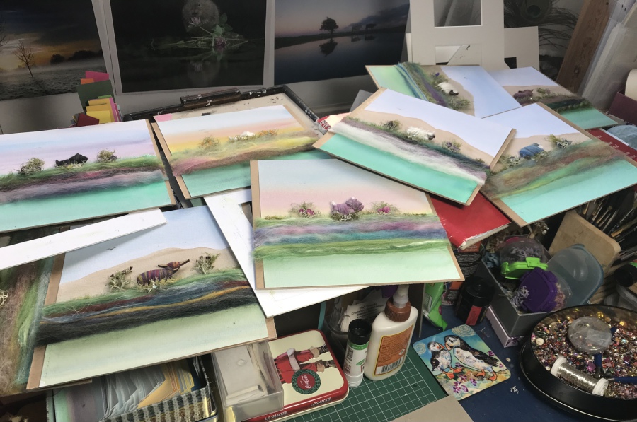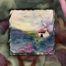 LinPin Crafts - Lynne McGill creates colourful and wistful needle felt landscapes, seascapes and characters by needle felting in 2D and 3D. In using the finest soft merino roving wools, speciality fibres and blends, including tussah and sari silk. The felt works are soft, colourful and unique. Adding to the blends this year are LinPin Highlands, Hebridean Sea and Sunset customised wool and silk blends